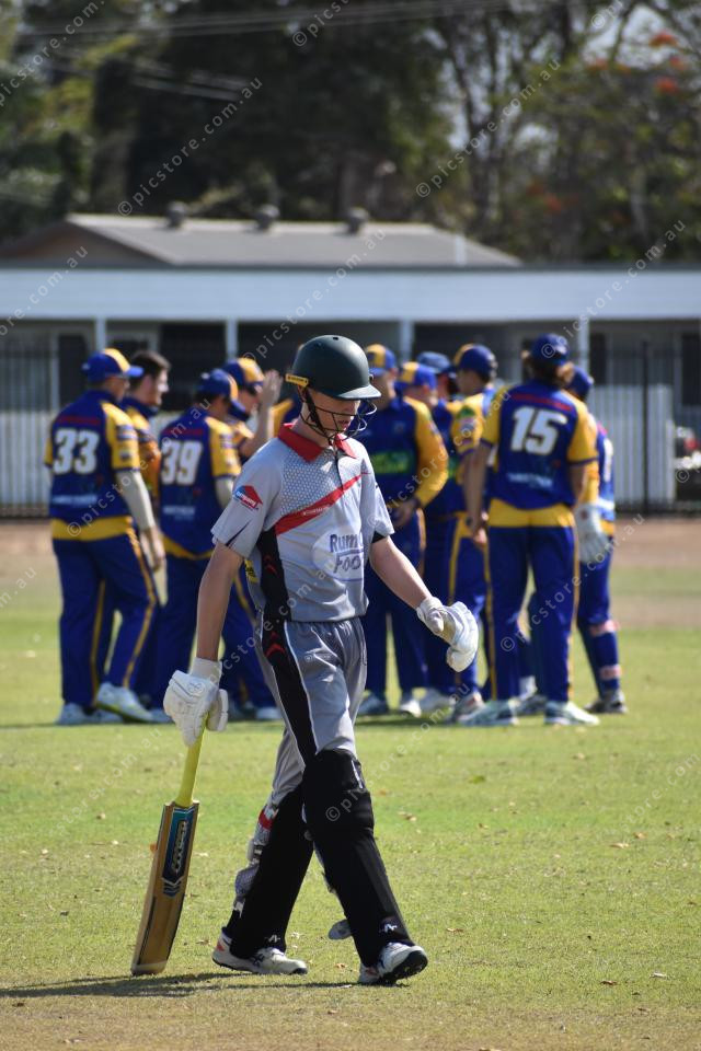 Waves celebrate the catch while Easts leave the pitch.