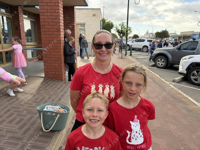 In the Christmas spirit was Kaz Boehm, with Emmett and Alexis. (526763_05)