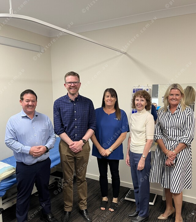 Kimba mayor Dean Johnson, health minister Chris Picton, deputy mayor Megan Lienert, Dr Robyn Lawrence and EFNLHN CEO Julie Marron. (Supplied)