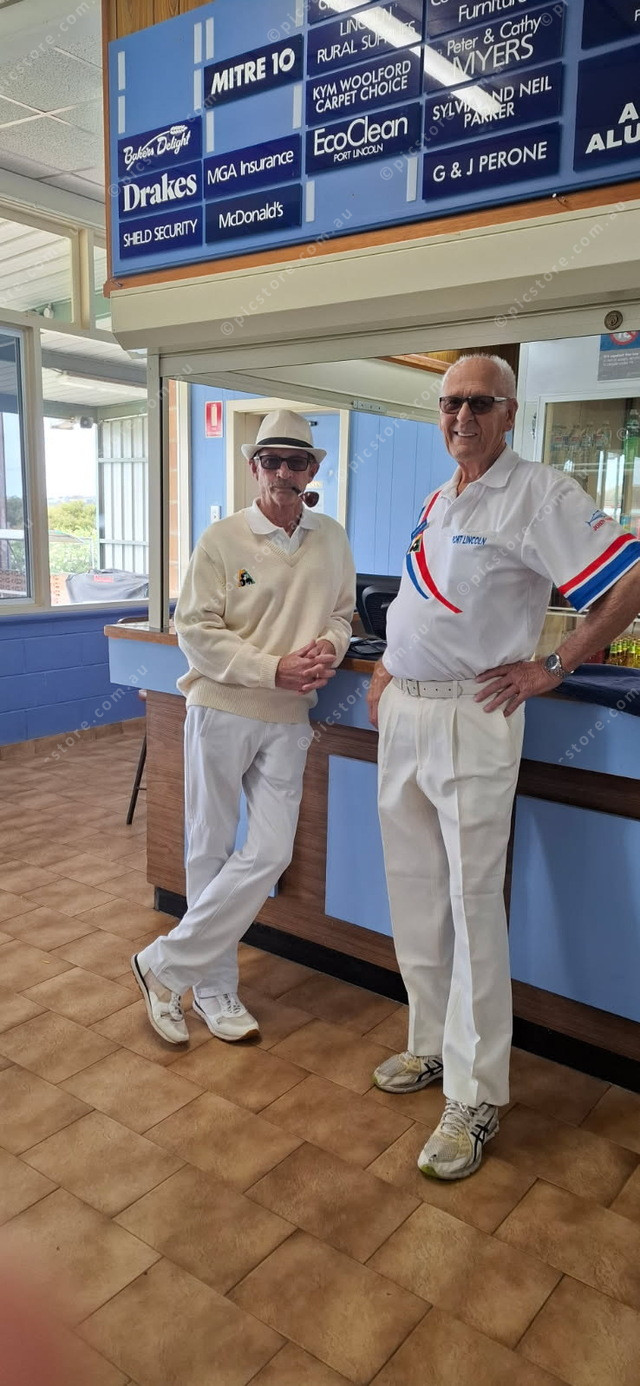 Gerry Fagan and Ernie Irwin after a day celebrating the club’s 100 years on the bowls. (470733_07)