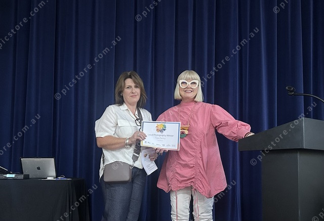 Local Photography winner Tara receiving her certificate from Heather Croall. (509894_03)