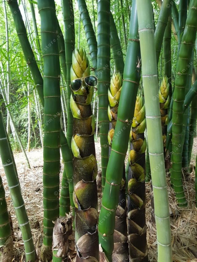 Bambusa vulgaris or Large Buddha Belly Bamboo. A stand-alone feature plant that can grow four to eight metres tall.