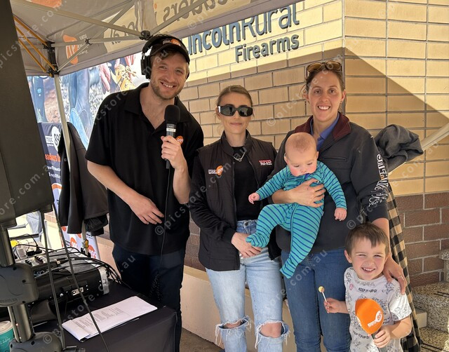 Magic 899’s Riz and Jaz broadcast live from the event pictured here with Shelby Fraser holding Rylan Frederickson and young Silas Frederickson. (484075_04)