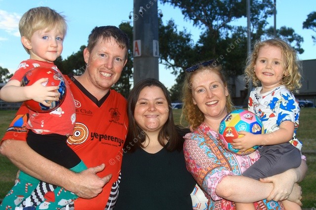 FRIENDS: Leo, Organ-Lynch, Myles Lynch and Courtney Organ with Jules Marshall and Joey Kordonski at the Traeger Park CHristmas Carols. (PIC: PHIL WILLIAMS 522966_02)