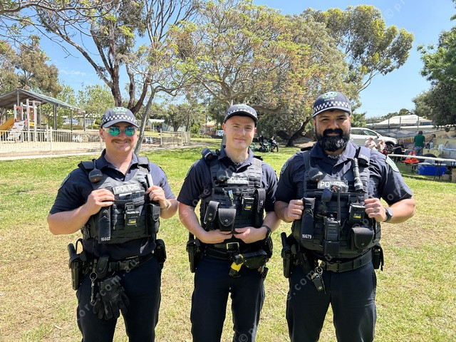 Delivering the SAPOL goods; Aaron Thomas, Doug Rhodes and TJ Parmar. (510951_05)