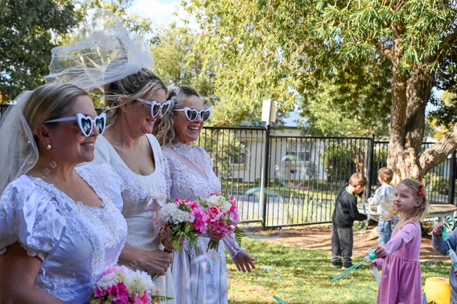 The brides get a bubble show from the children at Bishop Kindergarten. 491723_05