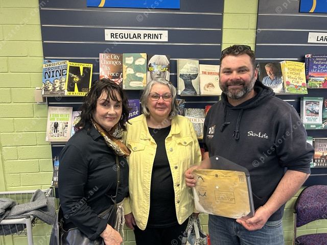 Gabrielle Ryan, Ann McFarlane and Hayden McFarlane, Hayden had a parcel from his grandmother. (491165_11)