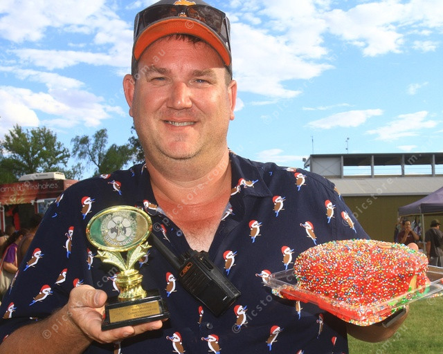 Show President Andrew Barrett won the blindfolded cake decoration challenge. (PIC: PHIL WILLIAMS 519465_09)