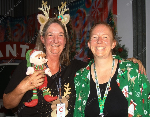HELPERS: Santa’s Helpers jenny Ashenden and Rachel Jericho are all smiles. (PIC: PHIL WILLIAMS 519465_14)