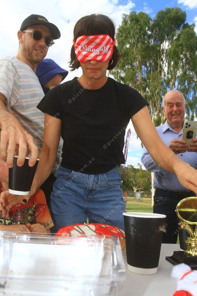 Mayor Asta Hill took on the challenge of decorating a cake while wearing a blindfold. (PIC: PHIL WILLIAMS 519465_24)