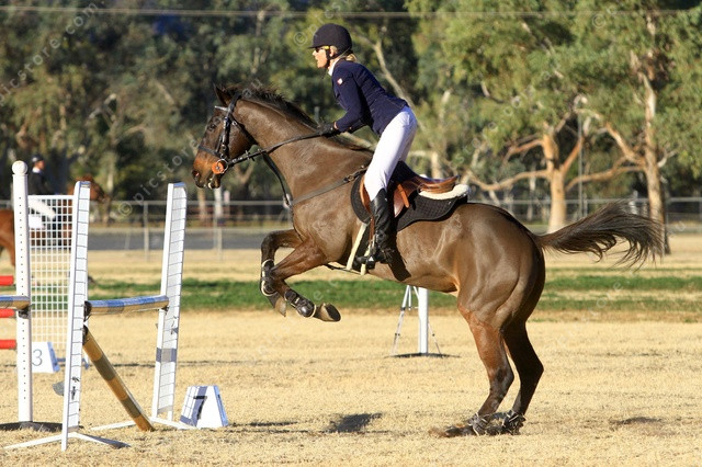 FOX: Samantha Langford on Herning Blue Fox takes off over a fence on Thursday. (PIC: PHIL WILLIAMS 488299_04)