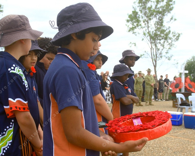 WAIT: Living Waters students wait patiently before placing their wreath during the Remembrance Day ceremony. (PIC: PHIL WILLIAMS 516992_12)
