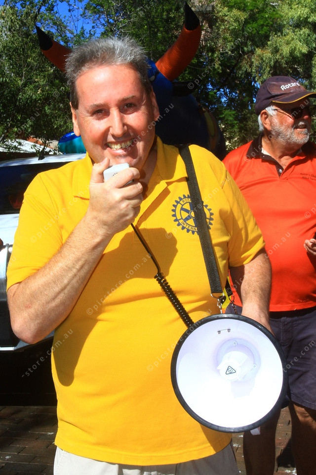SPRUIKER: Nigel spruiking to raise money for Rotary. (PIC: PHIL WILLIAMS)
