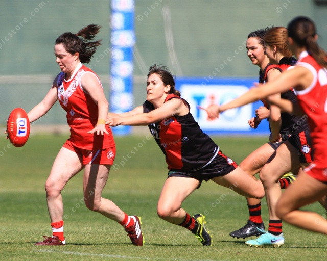 Feds Alice Faulks about to be brought down by a desperate Sally Crrispe. (PIC: PHIL WILLIAMS 489521_06)