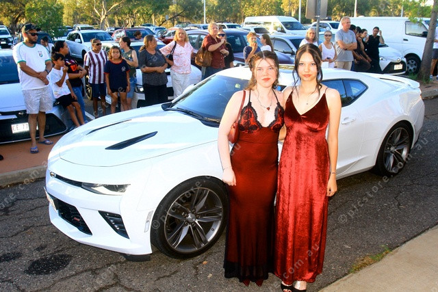 GLAMOUR: Mercedes Strawbridge and Chiara Polaski rode in a white Mustang to make their formal entrance. (PIC: PHIL WILLIAMS 522034_21)