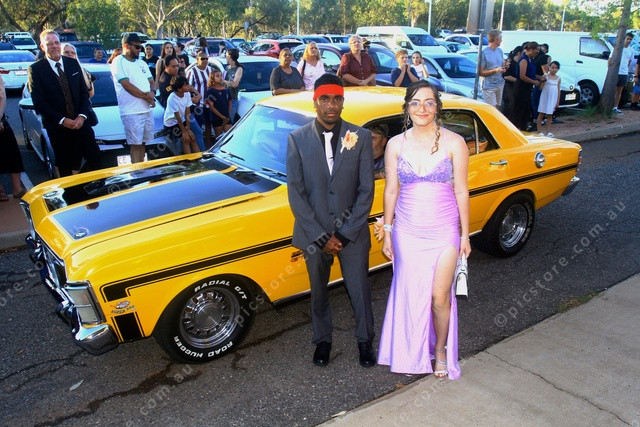 GT ENTRANRANCE: Hartley Rowa and Isabelle Short made a big V8 entrance in a classic Falcon GT. (PIC: PHIL WILLIAMS 522034_22)