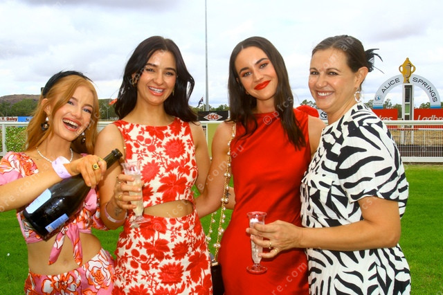 Jaz Anderson, Tenille Crack, Chloe Anderson and Rene Taylor making the most of Ladies Day. (PIC: PHIL WILLIAMS 467246_23