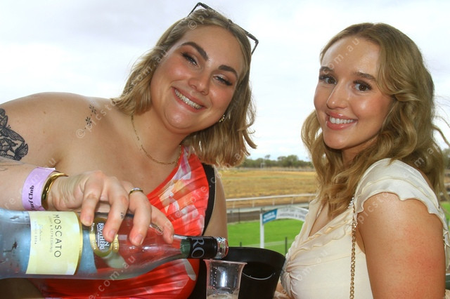 SHARE: Brie McSweeney and Georgia Auricht share a drink at Pioneer Park . (PIC: PHIL WILLIAMS 467246_32)