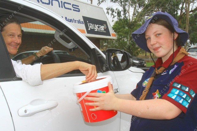 DONATE: Michelle Steadman puts a donation in Ella Schwer’s bucket.. (PIC: PHIL WILLIAMS 517818_05)