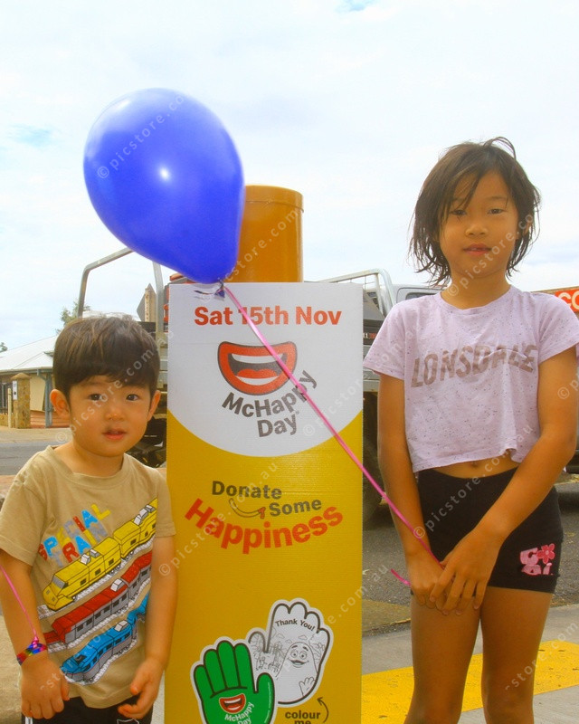 McHAPPY: Shi Yin and Ji Yu Chen get ready for some McHappy Day fun. PIC: PHIL WILLIAMS 517818_10)
