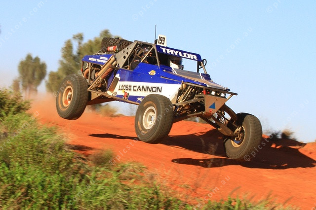 HANGING LOOSE: Brett Taylor flies over the jump near the spectator and pit area (PIC: PHIL WILLIAMS)