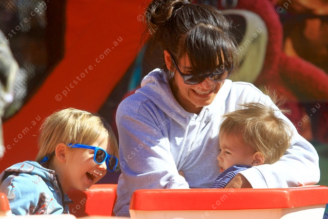 FUN TIMES: Genevieve Francais with Caden and Lucas Skipsey going for a spin on the Tea Cup ride. (PIC: PHIL WILLIAMS 495236_01)