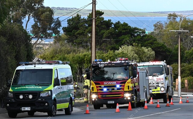 Police, Fire and Ambulance services responded to the house fire on Flinders Highway. (Charlotte Martin: 485492_01)