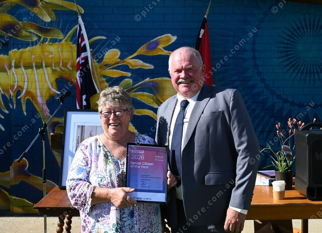 Lizzie Dodd received the Senior Citizen of the year award from mayor Geoff Churchett. (530652_04)