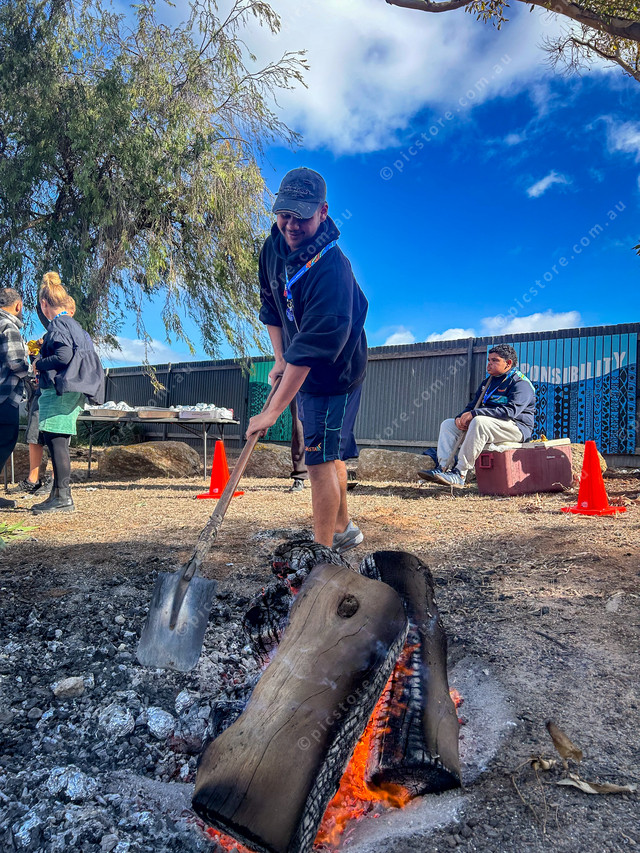 Jeffrey Coleman spreading out the coals. (480877_01)