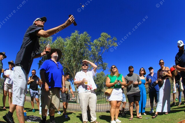 Punters look on as Brad Saxby flings the coins into the air during the two-u game on ANZAC Day. (PIC: PHIL WILLIAMS 474280_07)