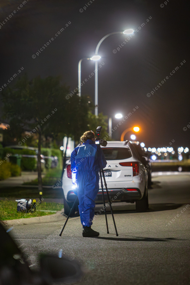Forensic police at the crime scene on Observatory Street in Clyde North.