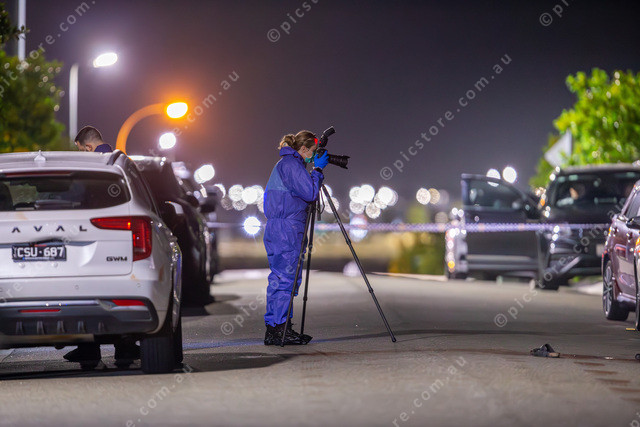 Forensic police at the crime scene on Observatory Street in Clyde North.