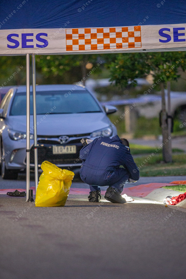 Forensic police at the crime scene on Observatory Street in Clyde North.