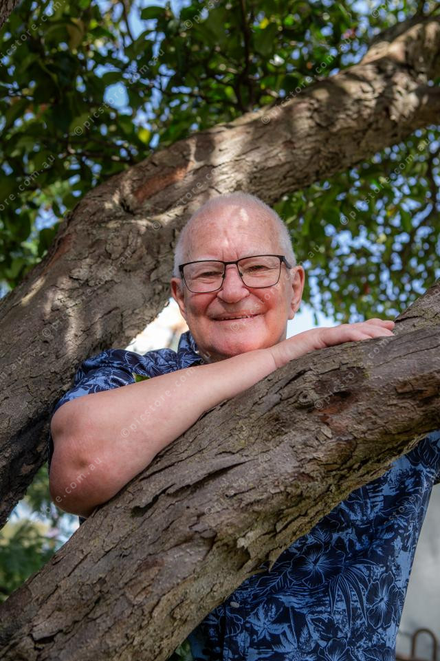 Barry Taylor with a tree in the front yard that his mother planted.