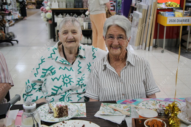 Friends born on the same day Sofie Vranssen and Beverley Hall loved their 85th birthday cake. (Dee Elferink:527706_06)