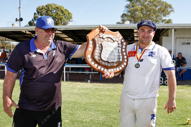 John Wynne presents South Gawler captain Brodie Barker with the winner’s shield