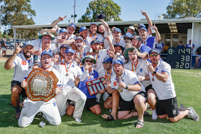 The triumphant South Gawler A1 side with fans and members of their winning A3 team