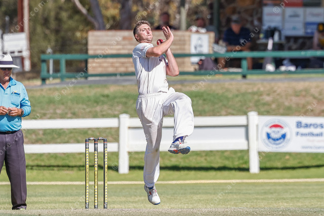 Brad Wilson bowling left-arm around-the-wicket for Mallala. (Mark Willoughby: 463068_04)