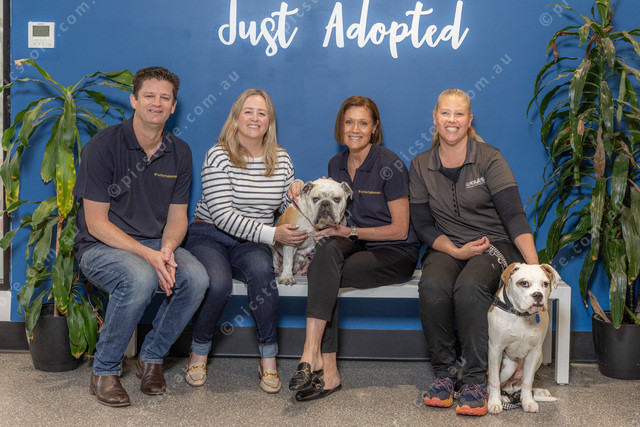 L-R Sam Hawkins, Lisa Hauck, Georgia (English Bulldog), Jaquelyn Thatcher-Brady, Mandy Warrick and (Chad).