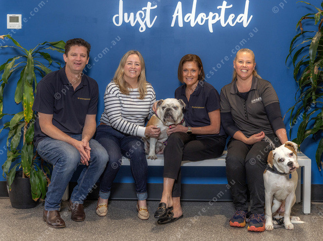 L-R Sam Hawkins, Lisa Hauck, Georgia (English Bulldog), Jaquelyn Thatcher-Brady, Mandy Warrick and (Chad).