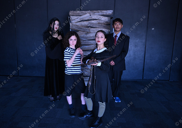 Point Cook P-9 College doing a production of The Adams Family. Pic of students Abigail (front), Irene, Jeronimo and Dylan. (Damjan Janevski). 494484_04