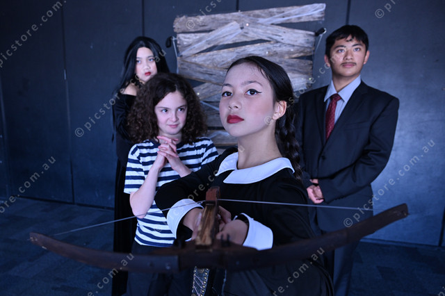 Point Cook P-9 College doing a production of The Adams Family. Pic of students Abigail (front), Irene, Jeronimo and Dylan. (Damjan Janevski). 494484_05