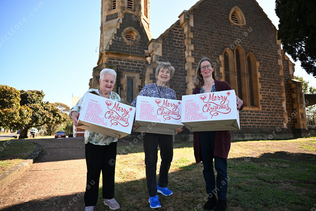 Bacchus Marsh Uniting Church will be a pick up and drop off point for the adverse advent calendar initiative. Pic of church members: Iris Blythe, Margaret Murphy and Kylie Lumb. (Damjan Janevski). 513789_06
