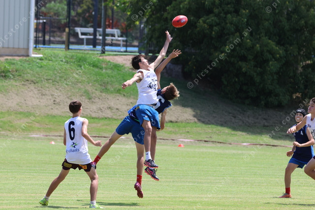 Tony Waine and Tanna Sell leap for the ball-up.