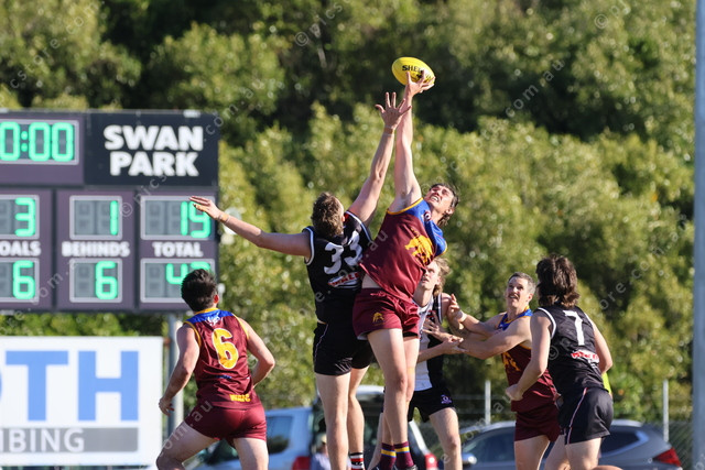Glenmore’s Haidyn Thomas rises above BITS Cameron Ferguson on the ball-up.