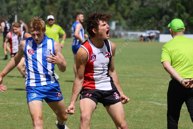BITS’ Tyson Allen celebrates a close-range goal.