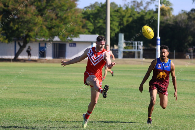 Yeppoon’s Leigh Cossens drop punts from the wing.