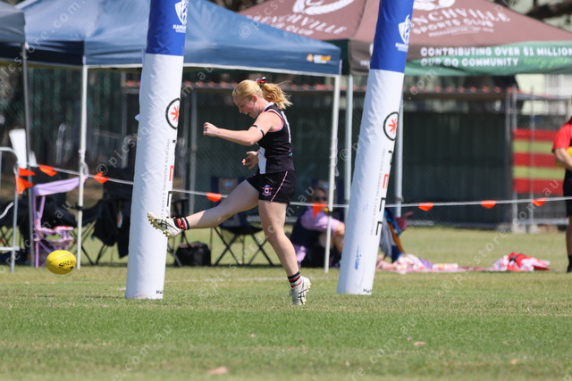 Indiana Franklin smiles as she slots home a great team goal for BITS.
