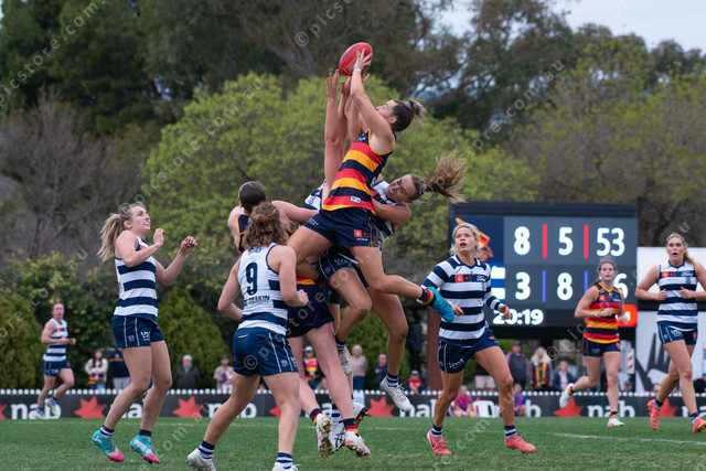 Adelaide’s Caitlin Gould flies above the pack during round two. (Dani Brown: 498583_02)