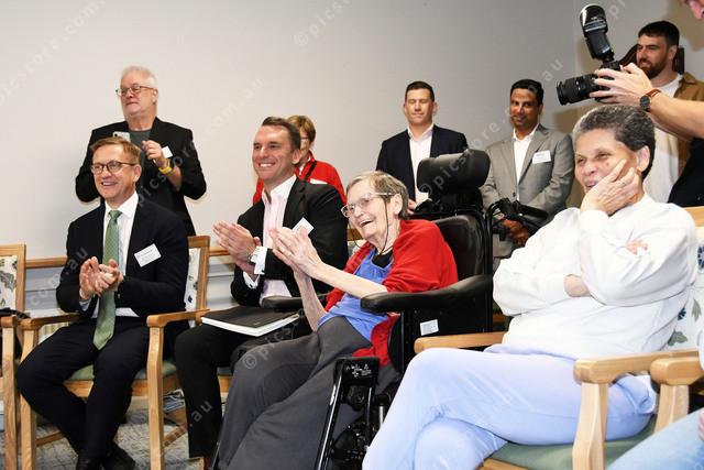 Bruce MP Julian Hill, Cameron McPherson, CEO at Medical & Aged Care Group and resident Nicoletta 470884_04